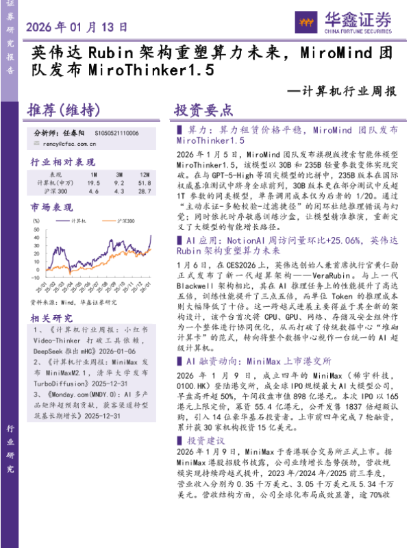 【华鑫证券】【202601】英伟达Rubin架构重塑算力未来,MiroMind团队发布MiroThinker1.5-19页