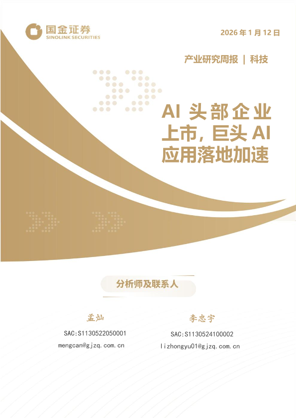 【产业研究中心】【202601】科技产业研究周报:AI头部企业上市,巨头AI应用落地加速-14页