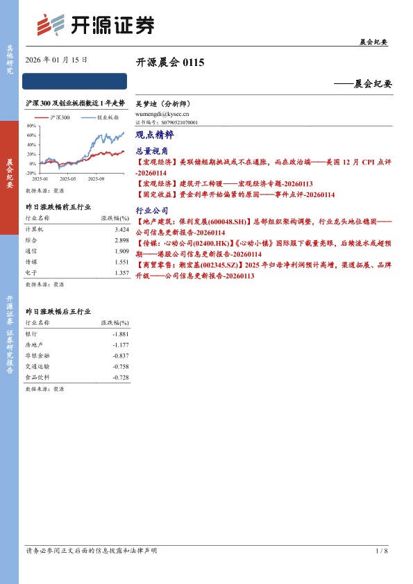 【开源证券】【202601】开源晨会-8页