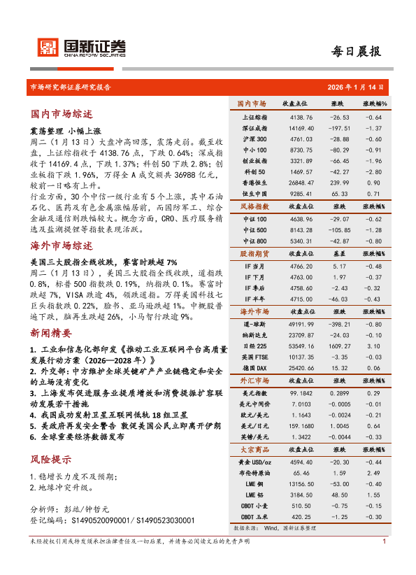 宏观经济 政策解读 海外市场 行业分析 市场综述