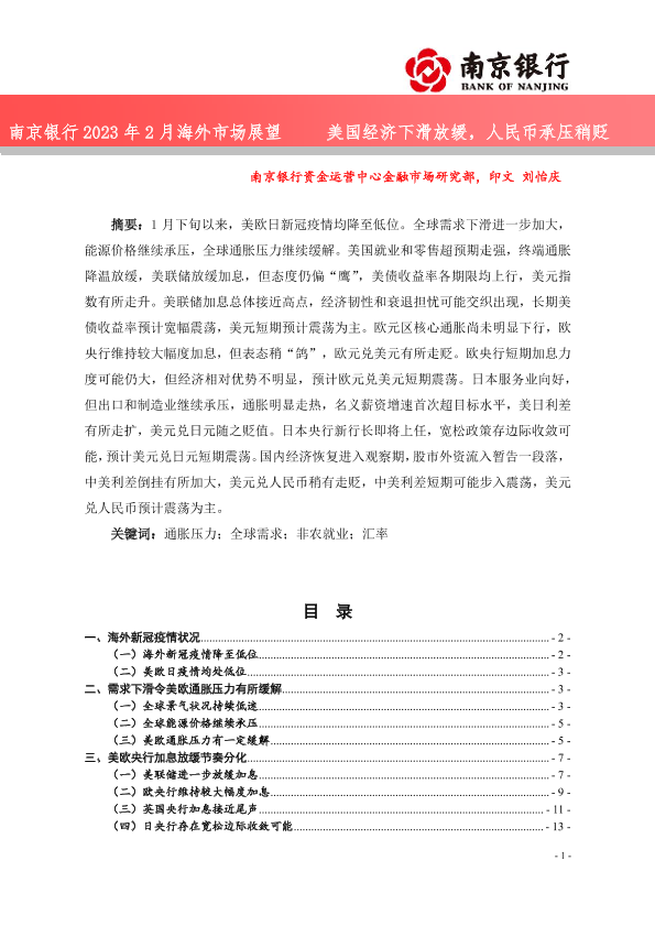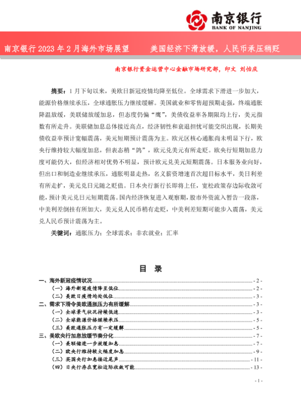 【南京银行】【20230217】2023年2月海外市场展望:美国经济下滑放缓,人民币承压稍贬-30页