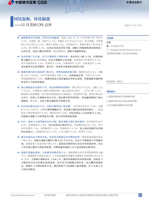 【银河证券】【2025】美国12月CPI点评:同比温和,环比偏强-4页