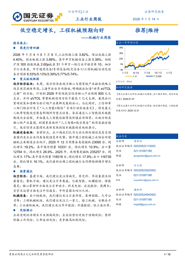 【国元证券】【202601】低空稳定增长,工程机械预期向好-12页