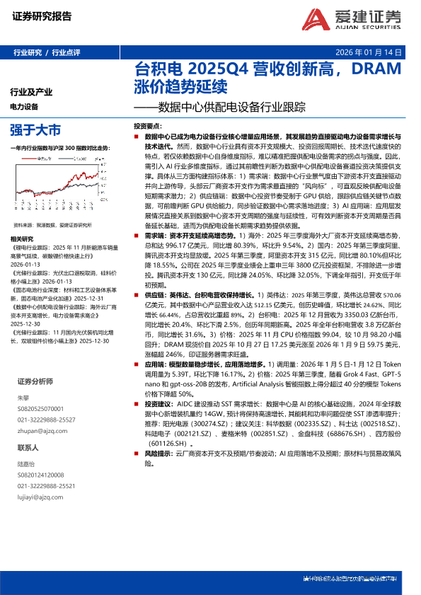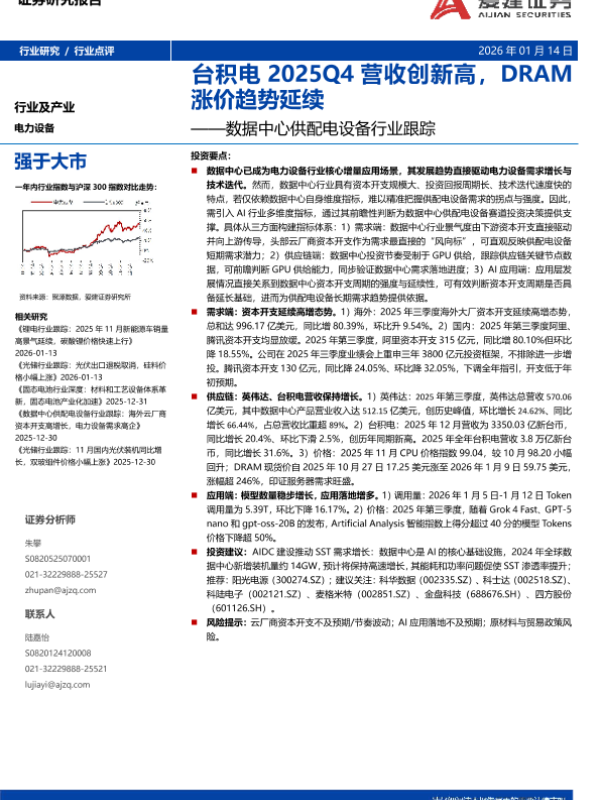 【爱建证券】【202512】电力设备行业数据中心供配电设备行业跟踪:台积电2025Q4营收创新高,DRAM涨价趋势延续-14页