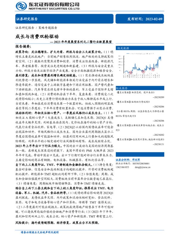 【东北证券】【20230209】2023年年度展望系列之二暨行业配置展望:成长与消费双轮驱动-37页