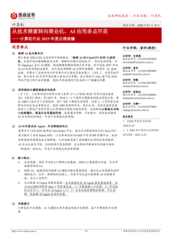 【浙商证券】【202601】从技术探索转向商业化,AI应用多点开花——计算机行业2025年度业绩前瞻-8页