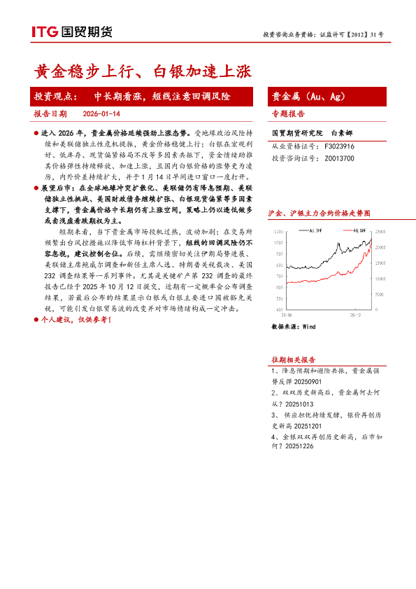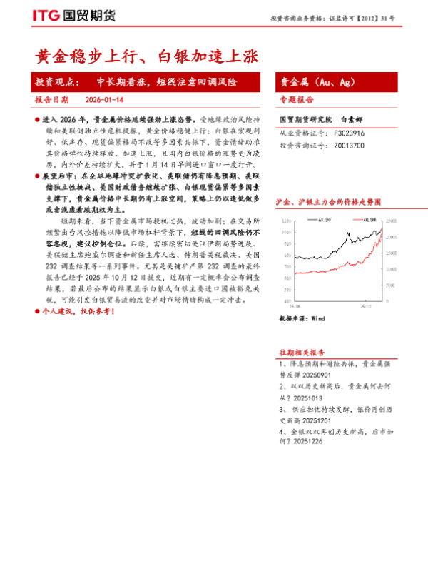 【国贸期货】【202601】黄金稳步上行、白银加速上涨-8页
