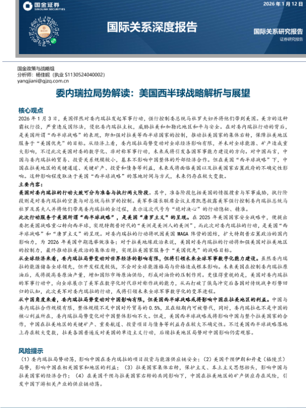 【国金证券】【202601】委内瑞拉局势解读:美国西半球战略解析与展望-15页
