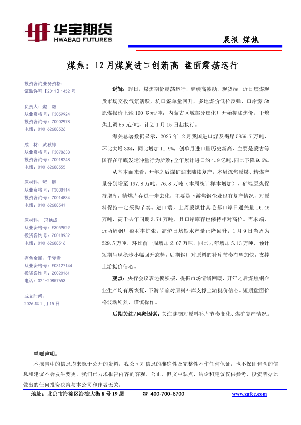 【华宝期货】【202601】12月煤炭进口创新高盘面震荡运行-1页