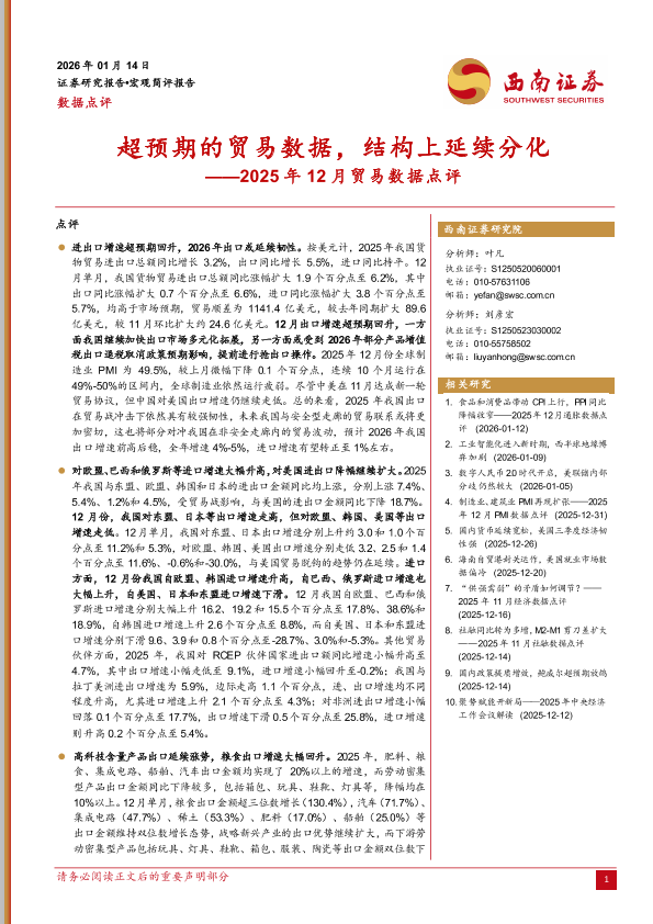 【西南证券】【202601】2025年12月贸易数据点评_超预期的贸易数据_结构上延续分化-7页