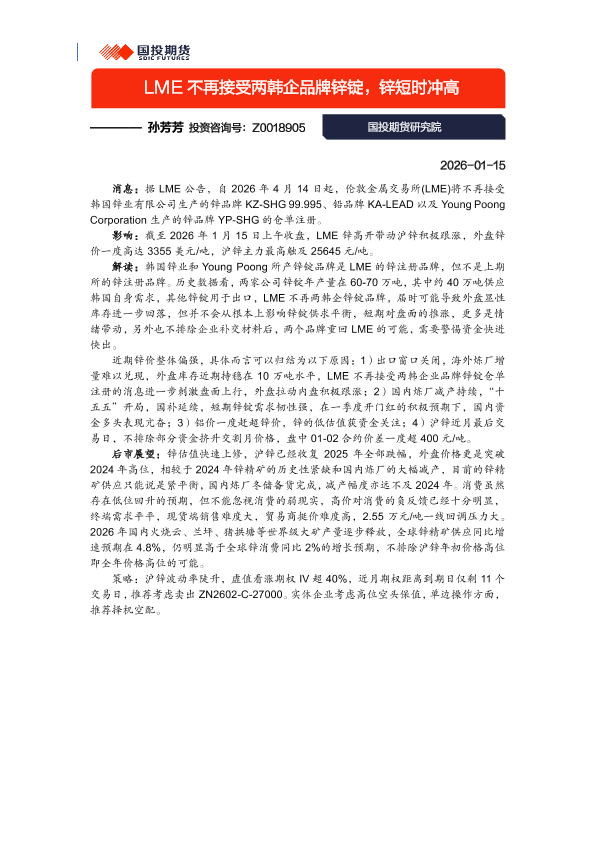 【国投期货研究院】【202601】LME不再接受两韩企品牌锌锭,锌短时冲高-2页