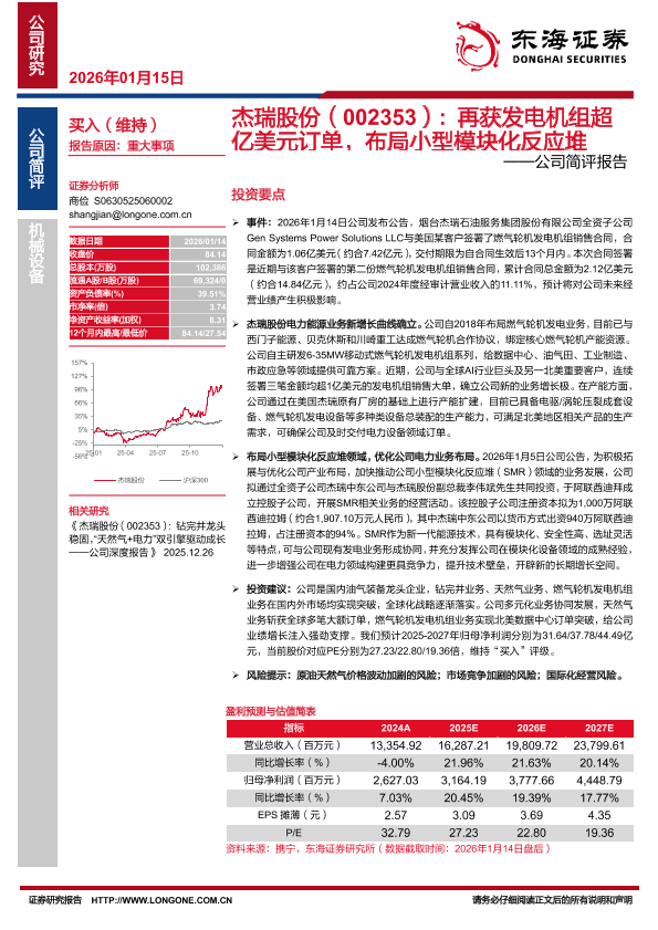 【东海证券】【202601】杰瑞股份(002353) 再获发电机组超 亿美元订单,布局小型模块化反应堆-3页