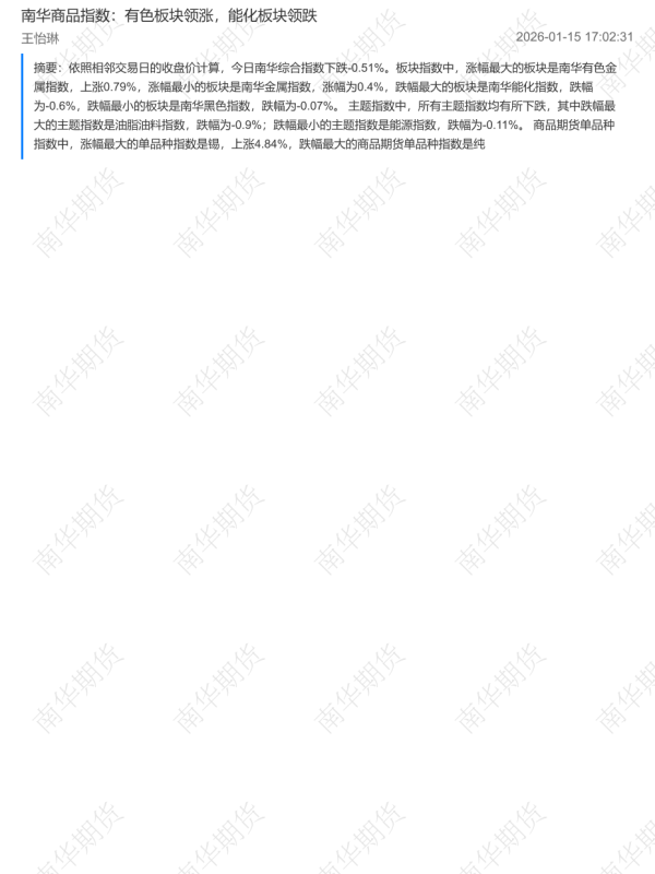 【南华期货】【202601】南华商品指数:有色板块领涨,能化板块领跌-2页