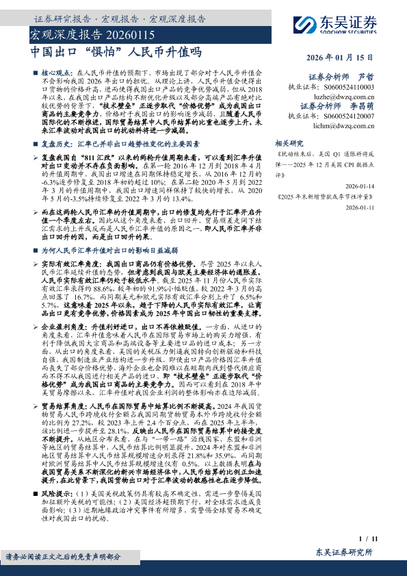 【东吴证券】【202601】中国出口“惧怕”人民币升值吗-11页