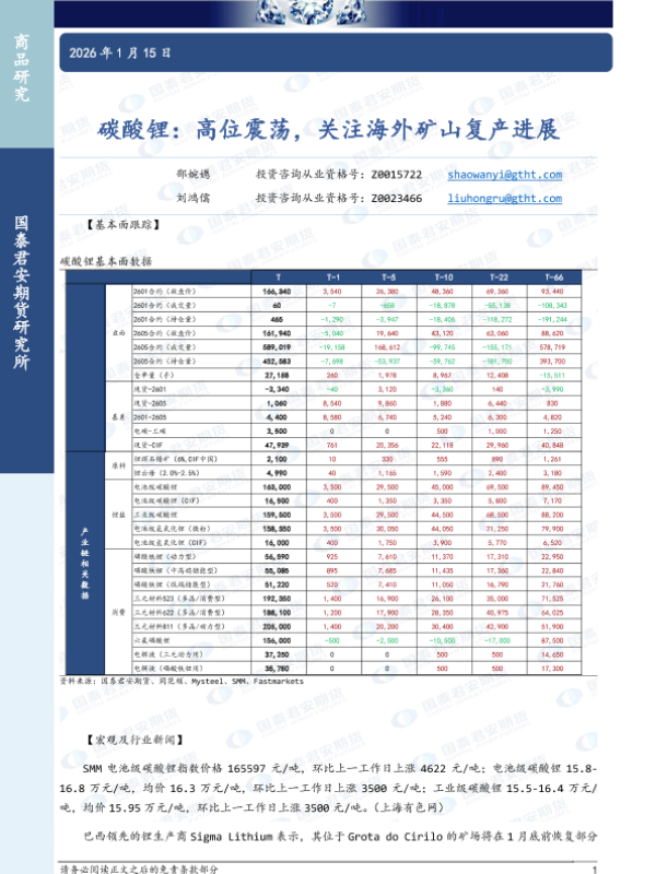 【国泰君安期货】【202601】碳酸锂:高位震荡,关注海外矿山复产进展-3页