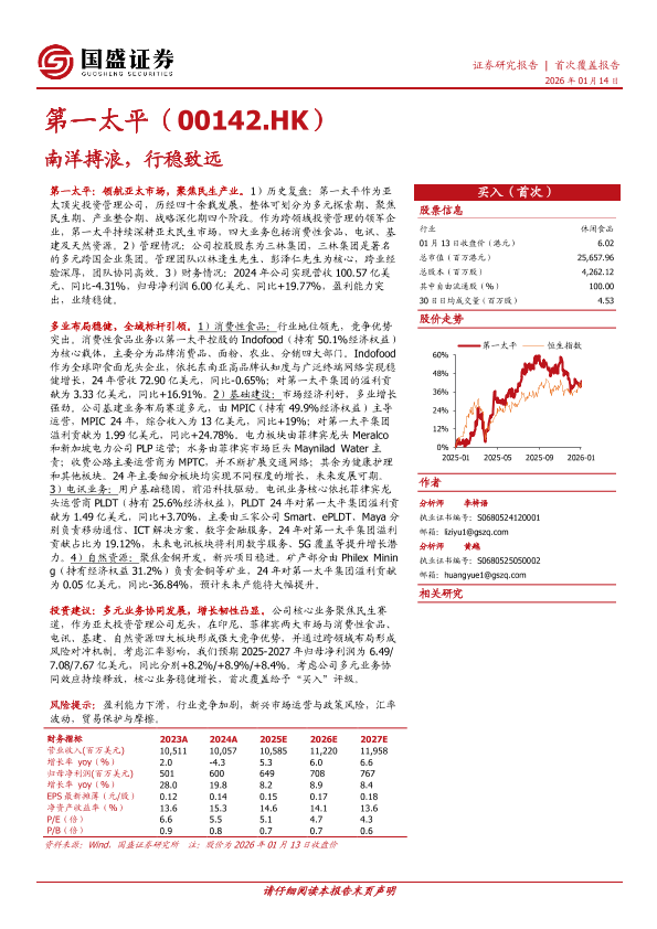 自然资源 第一太平 消费性食品 基建 电讯业务
