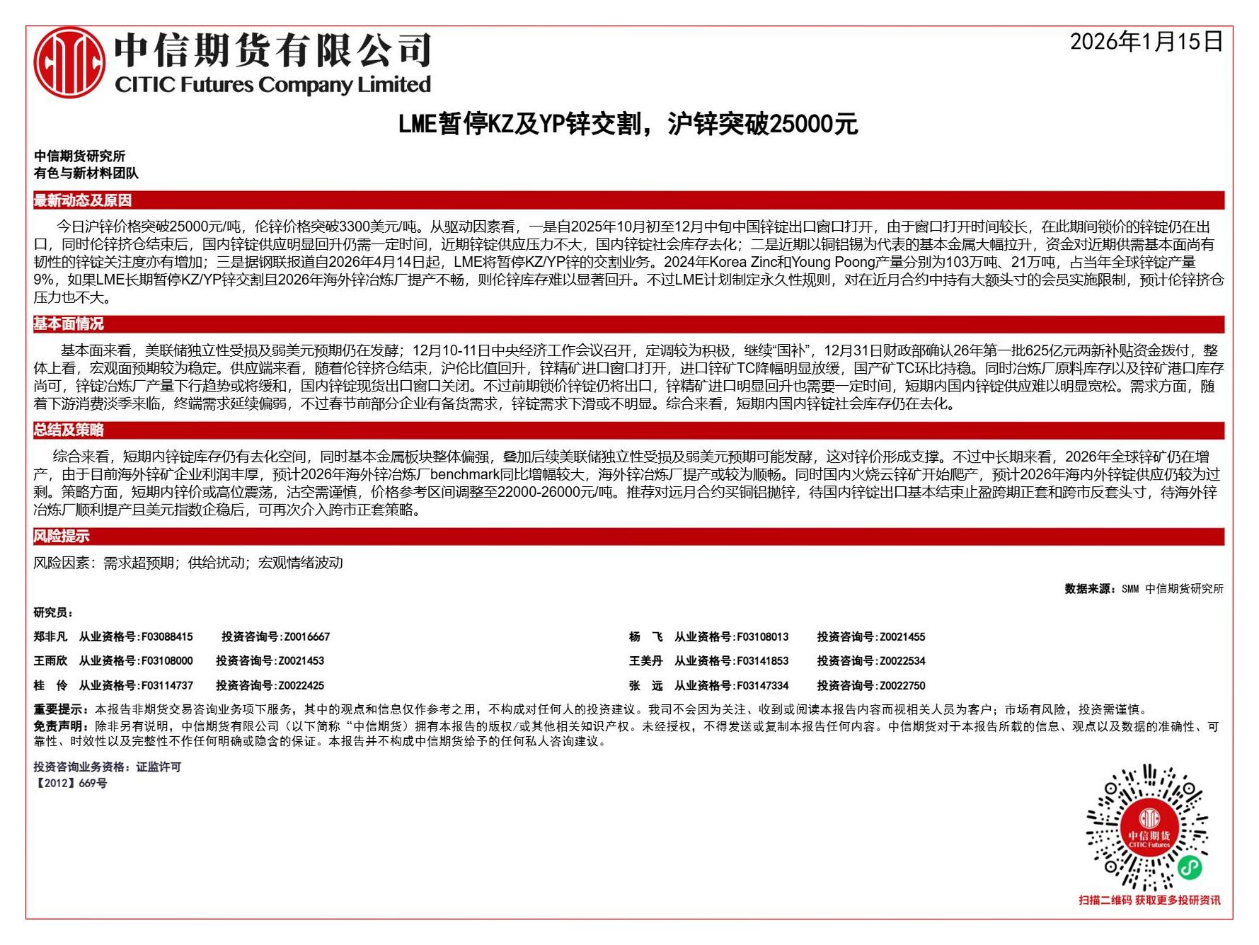 【中信期货】【202312】LME暂停KZ及YP锌交割,沪锌突破25000元-1页