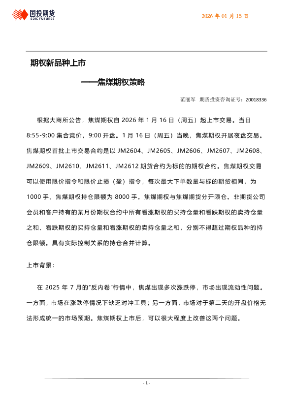 【国投期货】【202601】期权新品种上市——焦煤期权策略-5页