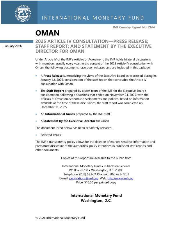 【国际货币基金组织】【202601】Oman 2025 ARTICLE IV CONSULTATION—PRESS RELEASE; STAFF REPORT; AND STATEMENT BY THE EXECUTIVE DIRECTOR FOR OMAN-79页