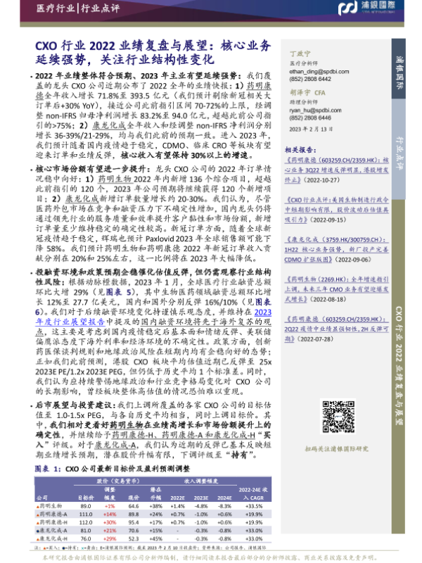 【浦银国际】【20230213】CXO行业2022业绩复盘与展望:核心业务延续强势,关注行业结构性变化-18页