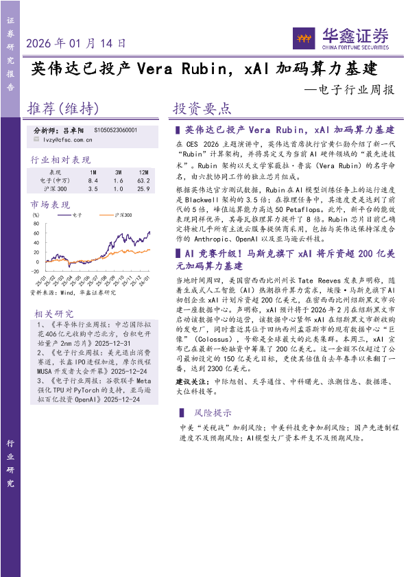 【华鑫证券】【202601】英伟达已投产 Vera Rub in,xA I加码算力基建-22页