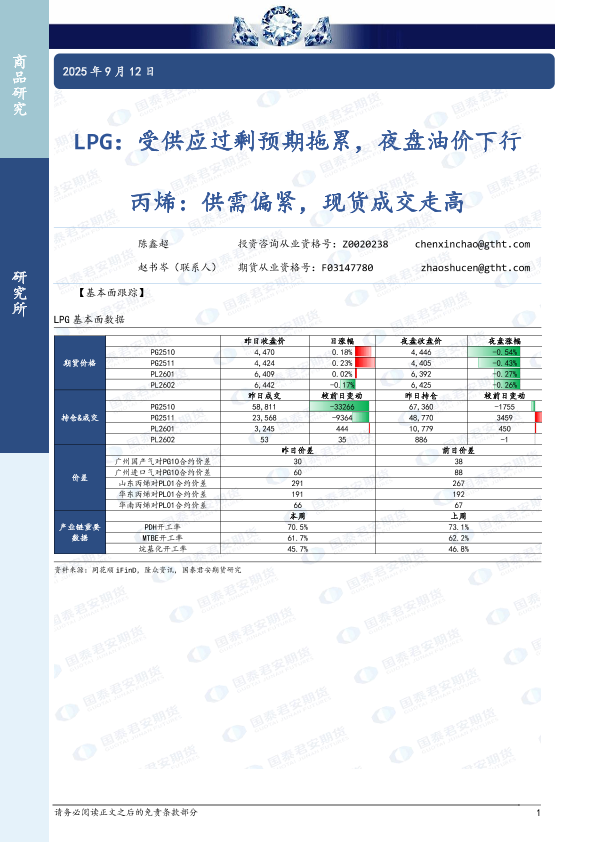 【国泰君安期货】【202509】LPG:受供应过剩预期拖累,夜盘油价下行 丙烯:供需偏紧,现货成交走高-4页