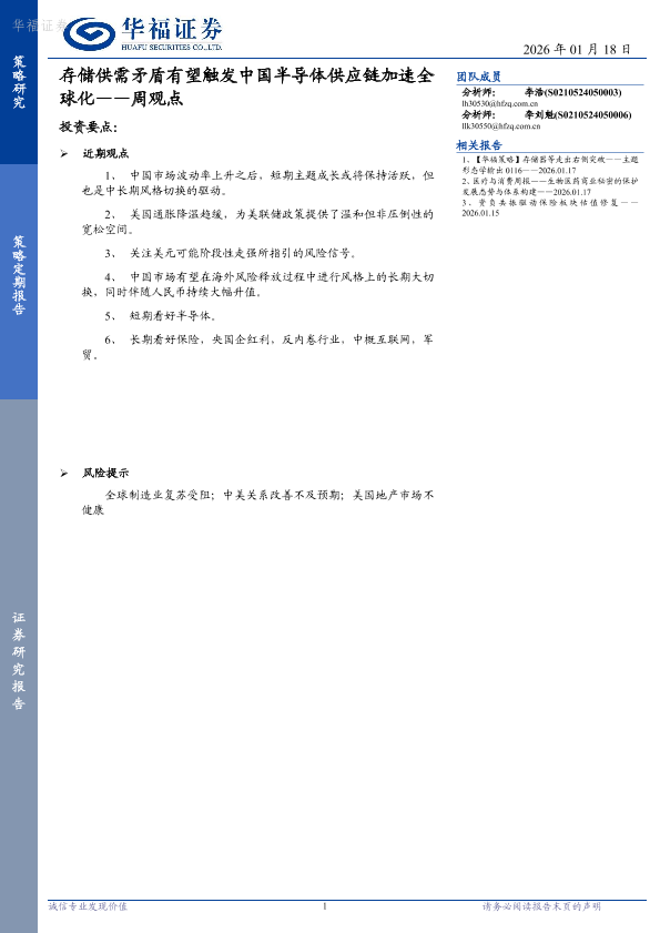 【华福证券】【202601】存储供需矛盾有望触发中国半导体供应链加速全球化——周观点-9页