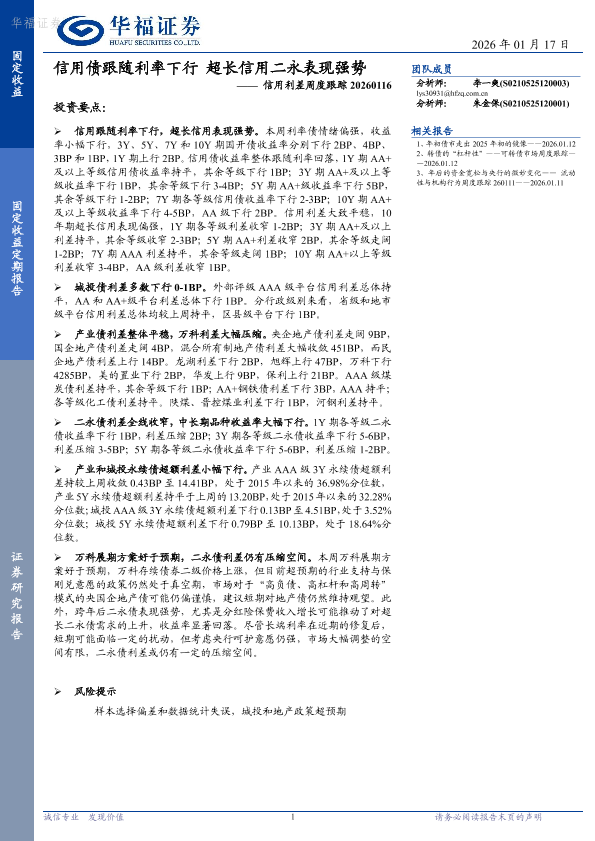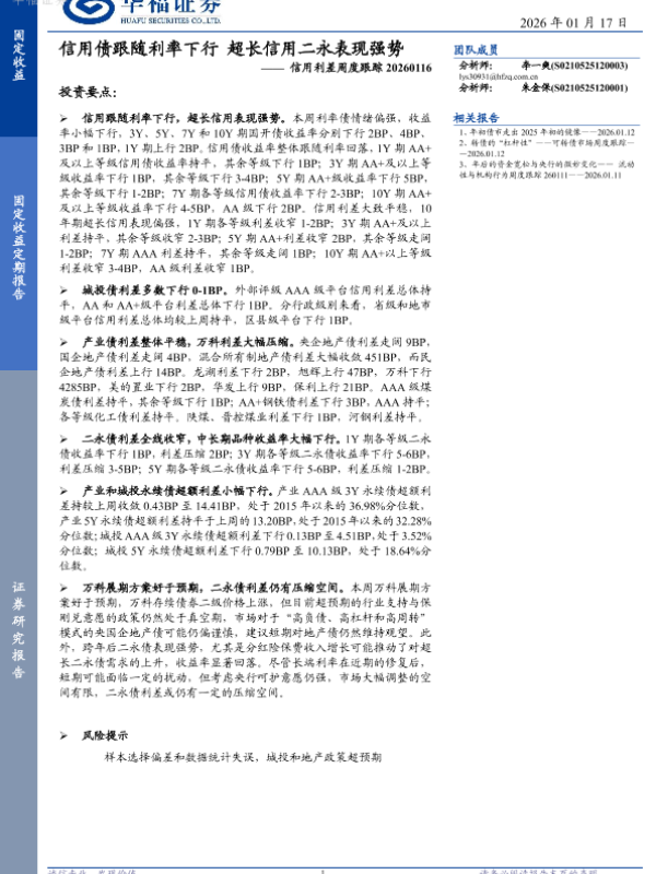【华福证券】【202601】信用债跟随利率下行超长信用二永表现强势——信用利差周度跟踪 20260116-10页