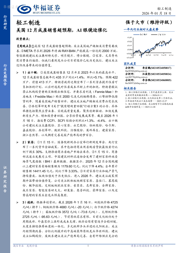 美国地产销售 造纸包装 AI眼镜 轻工制造 家居消费
