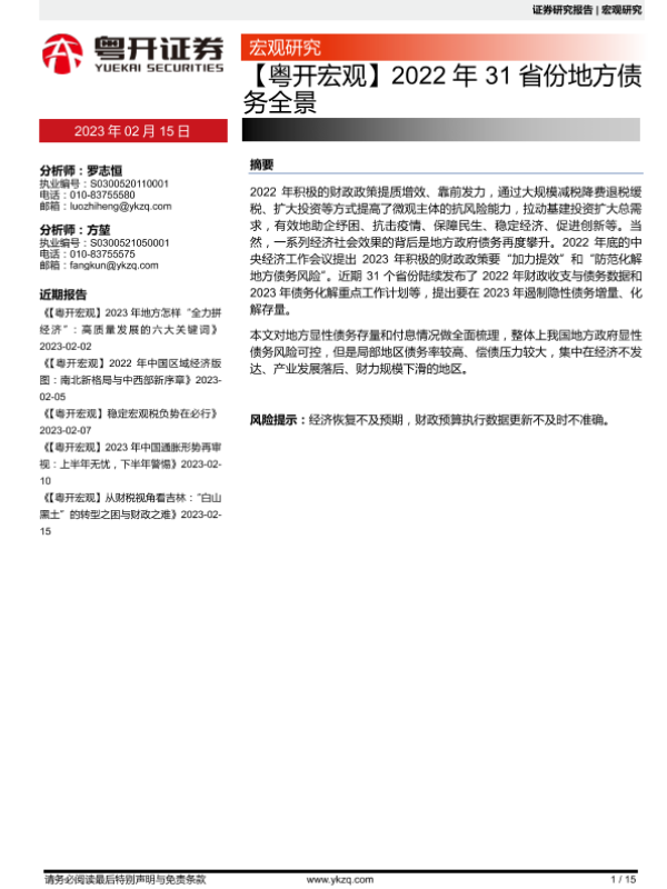 【粤开证券】【20230215】2022年31省份地方债务全景-15页