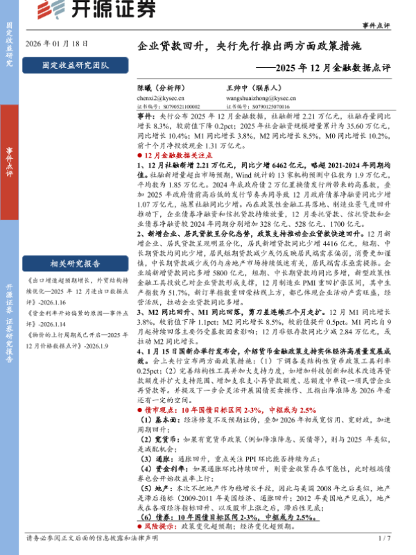 【开源证券】【202601】2025年12月金融数据点评:企业贷款回升,央行先行推出两方面政策措施-7页
