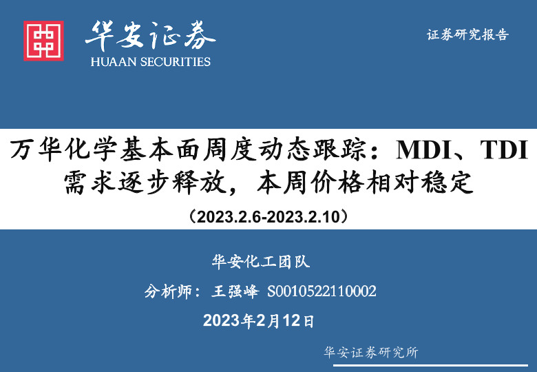 【华安证券】【20230212】万华化学基本面周度动态跟踪:MDI、TDI需求逐步释放,本周价格相对稳定-30页