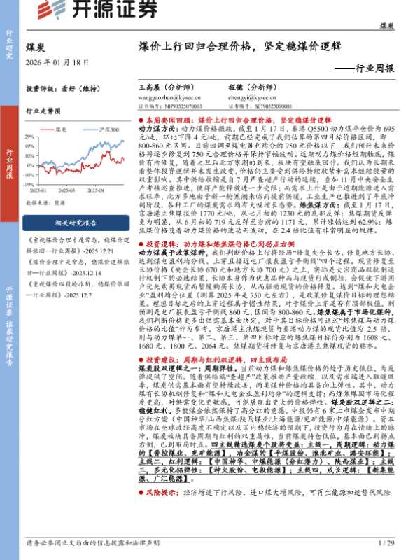 【开源证券】【202601】煤价上行回归合理价格,坚定稳煤价逻辑-29页