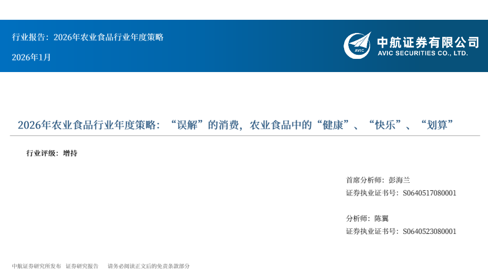 【中航证券】【202601】2026年农业食品行业年度策略:“误解”的消费,农业食品中的“健康”、“快乐”、“划算”-37页