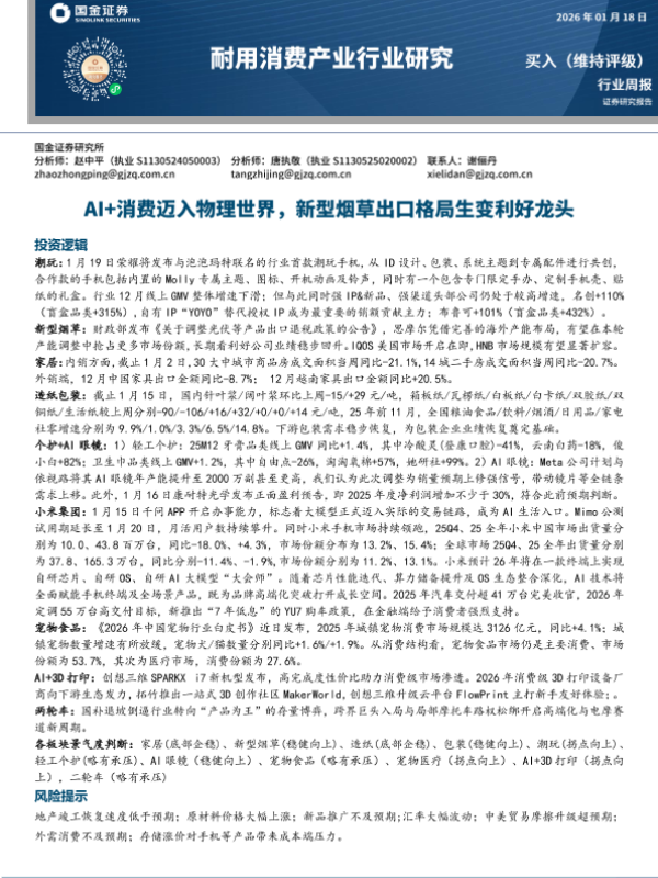 【国金证券】【202601】耐用消费产业行业研究:AI+消费迈入物理世界,新型烟草出口格局生变利好龙头-27页