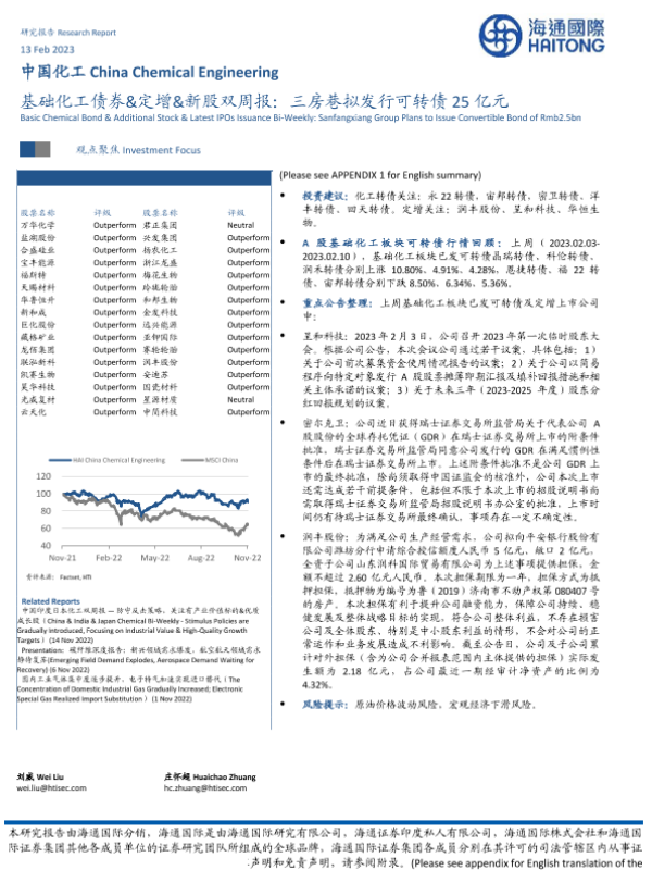 【海通国际】【20230213】中国化工行业基础化工债券&定增&新股双周报:三房巷拟发行可转债25亿元-20页