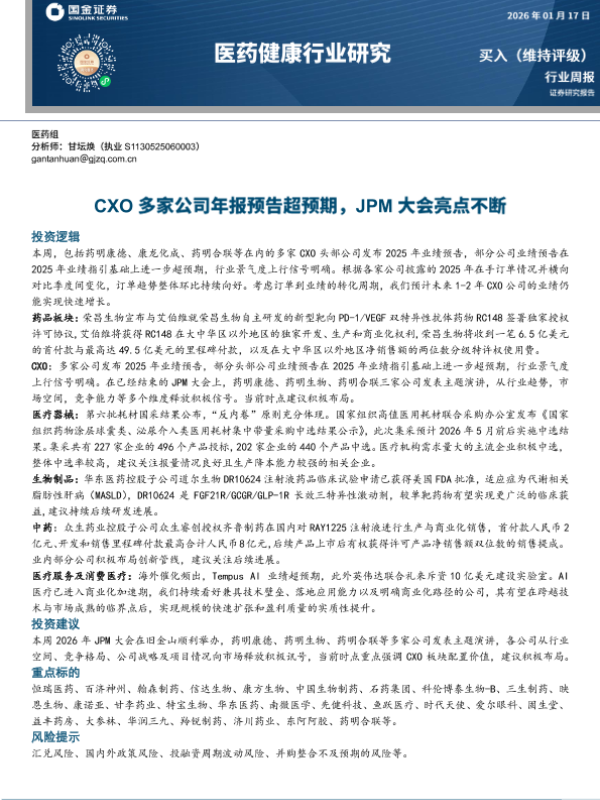 【国金证券】【202601】CXO多家公司年报预告超预期,JPM大会亮点不断-21页