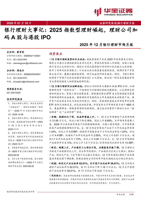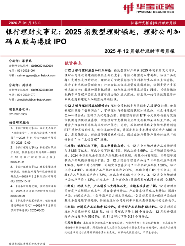 【华宝证券】【202512】银行理财大事记:2025指数型理财崛起,理财公司加码A股与港股 IPO-16页