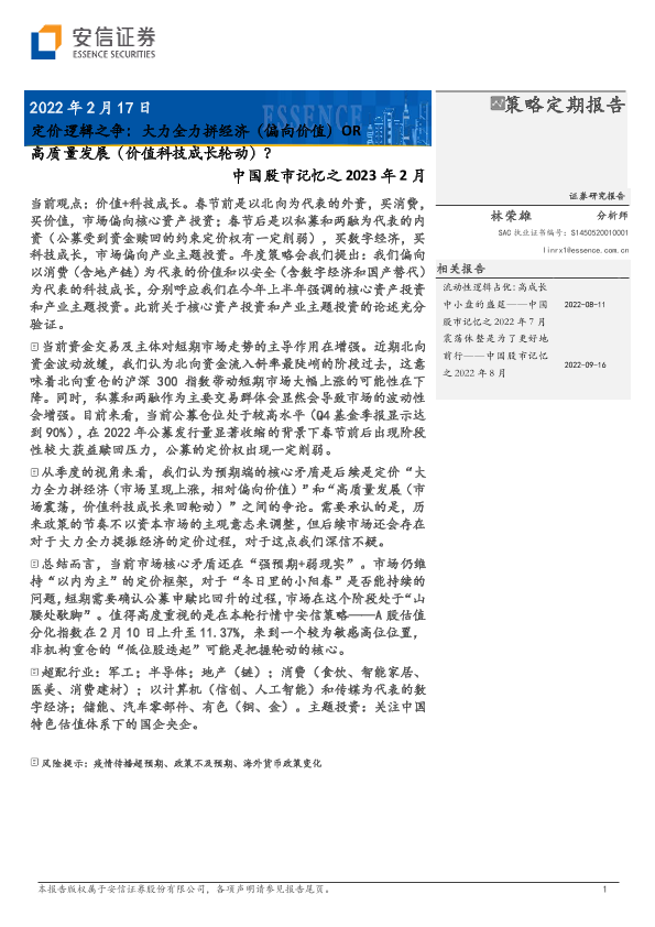 【安信证券】【20230217】中国股市记忆之2023年2月:定价逻辑之争,大力全力拼经济(偏向价值)OR,高质量发展(科技成长价值轮动)?-23页