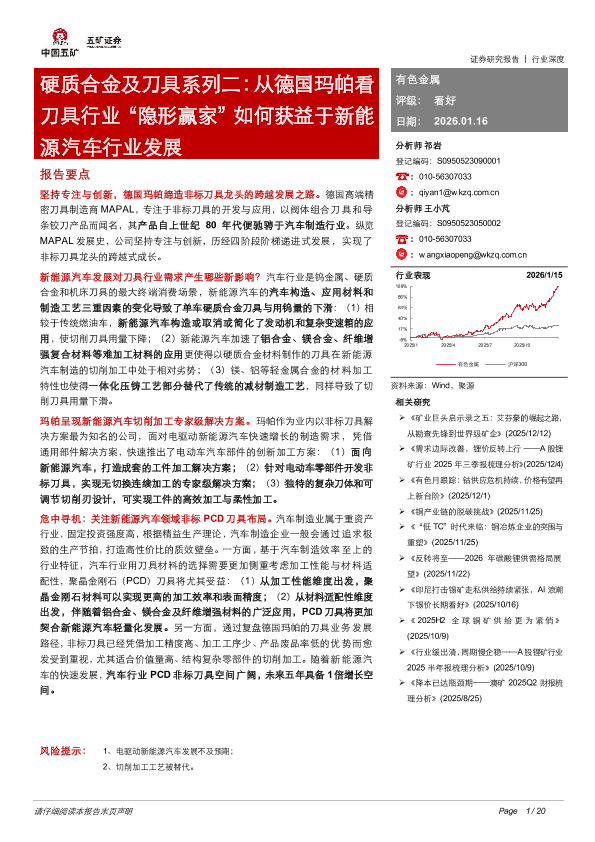 【五矿证券】【202601】硬质合金及刀具系列二:从德国玛帕看刀具行业“隐形赢家”如何获益于新能源汽车行业发展-20页