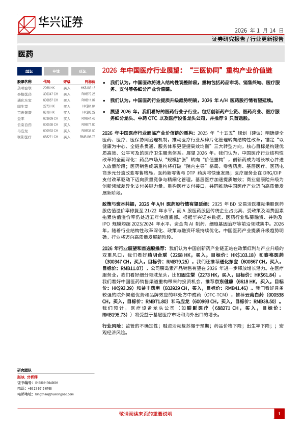 华兴证券 卫生和社会工作 2026年 PDF 2.3 MB
