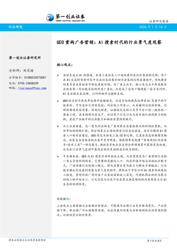 【第一创业证券】【2024】GEO重构广告营销:AI搜索时代的行业景气度观察-8页