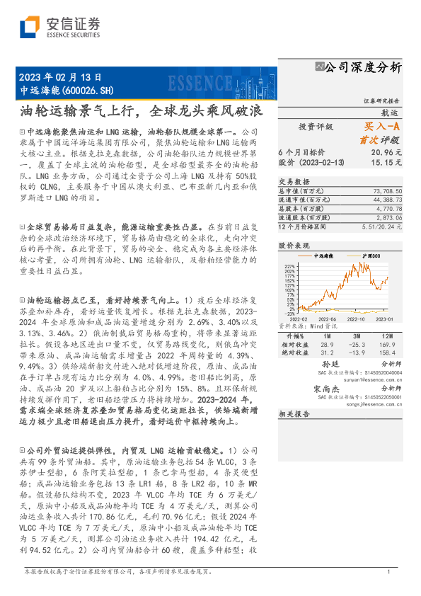 【安信证券】【20230213】中远海能(600026)油轮运输景气上行,全球龙头乘风破浪-30页