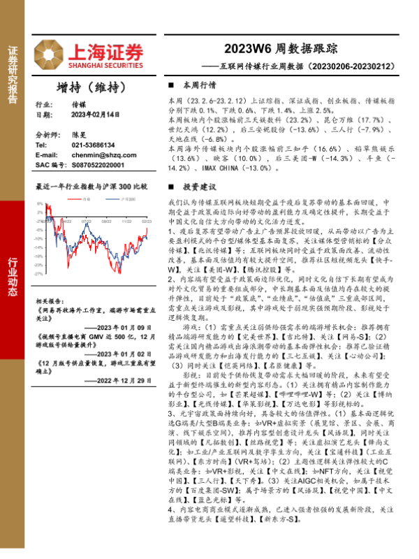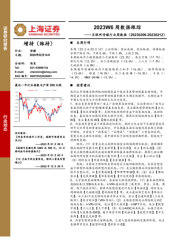 【上海证券】【20230214】互联网传媒行业周数据:2023W6周数据跟踪-22页