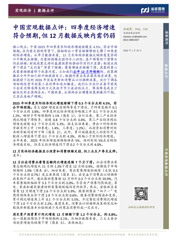 【浦银国际】【202601】中国宏观数据点评:四季度经济增速符合预期,但 12月数据反映内需仍弱-9页