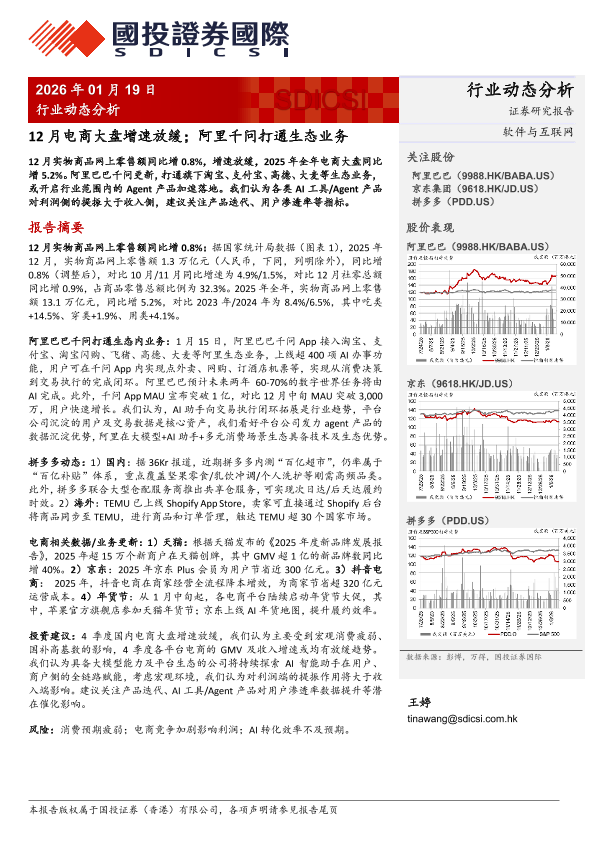 【国投证券国际】【202601】2026年01月19日 行业动态分析 SDICSI 12月电商大盘增速放缓;阿里千问打通生态业务-3页