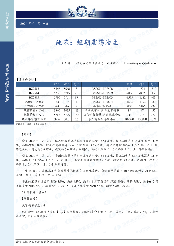 【国泰君安期货】【202601】纯苯:短期震荡为主-2页