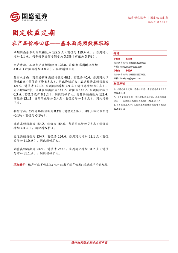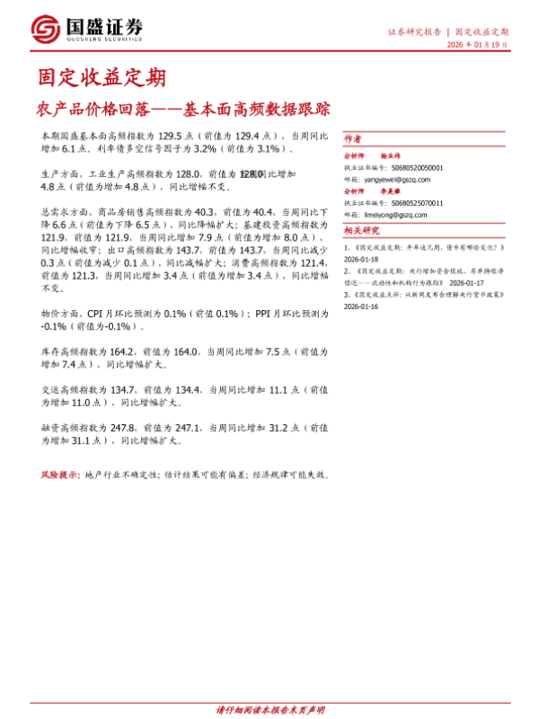 【国盛证券】【202601】固定收益定期_基本面高频数据跟踪-农产品价格回落-20页