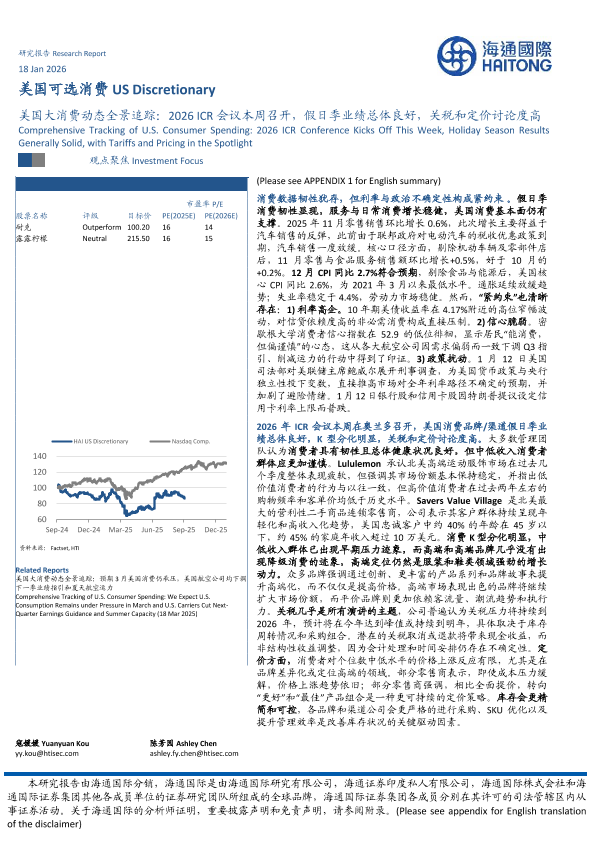 【海通国际】【202601】美国大消费动态全景追踪:2026 ICR会议本周召开,假日季业绩总体良好,关税和定价讨论度高-17页