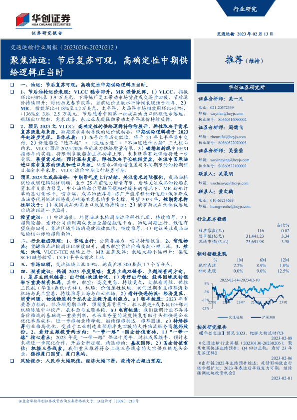 【华创证券】【20230213】交通运输行业周报聚焦油运:节后复苏可观,高确定性中期供给逻辑正当时-25页